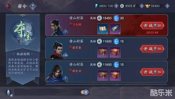 通过密令可以获取经验、银两、随机武学升级材料和战斗道具材料,限时密令还将获得锻造材料。