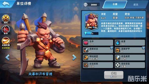 简介:血兽氏族近战攻击英雄,挥舞两把巨剑快速砍杀身边的敌人,犹如充满剑刃的风暴一般,一刀毙命。他曾在濒临死亡时,击溃整个军团,赢得胜利!血兽氏族尊敬的称呼他为英雄“风暴之刃”。