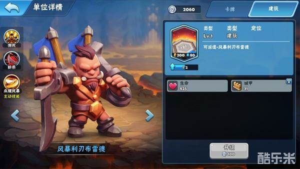 濒死(大本营II可解锁):布雷德战神附体,在濒临死亡时,免疫任何伤害,持续3秒,冷却时间120秒。属性:生命护甲各提升20% 攻击提升12%
