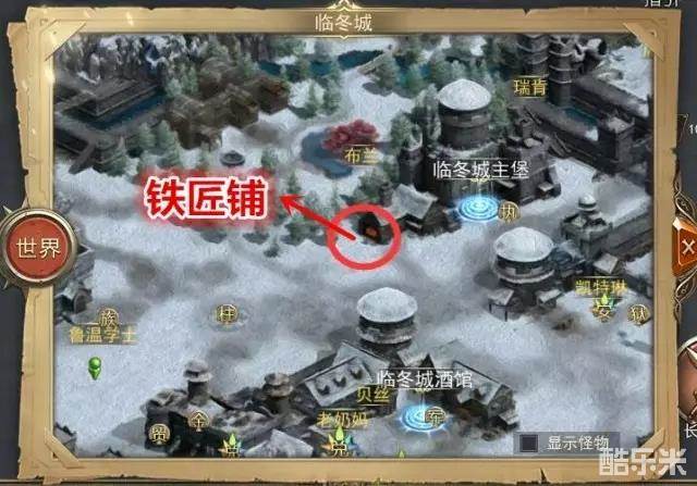 【铁匠铺】的位置如图所示,把【古老的材料】交给铁匠,获得【净化材料】