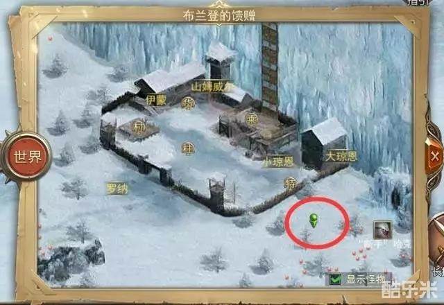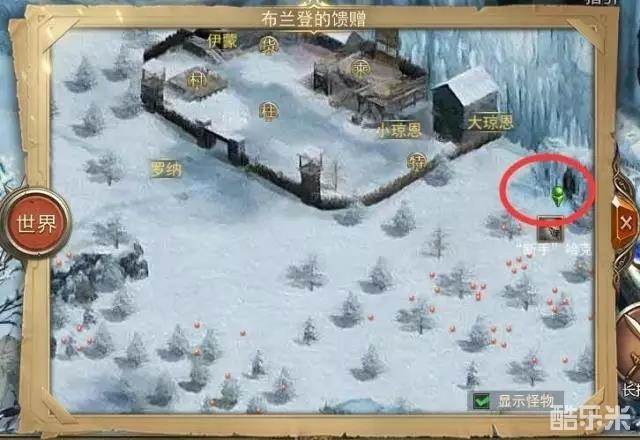 小豹在【布兰登的馈赠】如图所示的地方,遇见了两个路人。