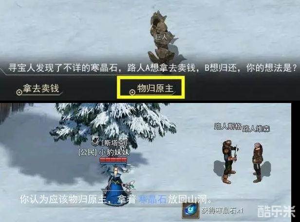 建议他们物归原主,然后肩负起将【寒晶石】送回山洞的重任。
