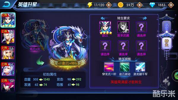 最后一张图是英雄转生,转生对英雄战斗力的提升是脱胎换骨的,其中攻击范围的提升我感觉是最为重要的。