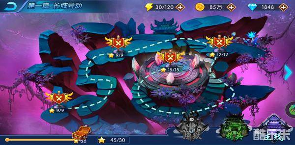 每种模式又分为5章(目前本人只解锁到第5章),分别为:《第一章长城异动》、《第二章皇陵之变》、《第三章不平魔都》、《第四章震慑雪岭》、《第五章金顶迷宫》。每章分为3到5大关,每关又分为1~10张地图。可以说最大限度的满足爱好塔防玩家的您。