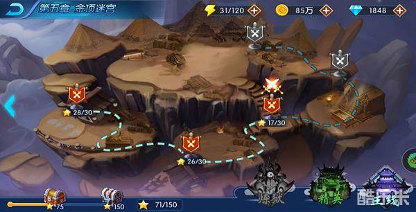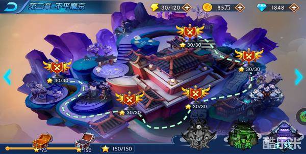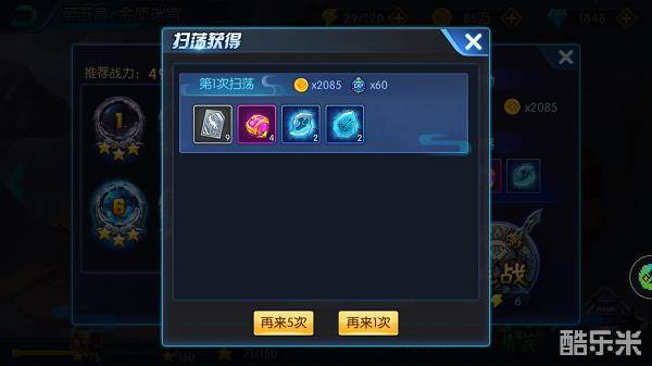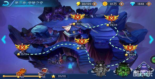 每张地图系统会根据您的通关表现(漏怪数目)给您打星,零星即为不通过,三星为满分,只有三星地图才能扫荡。每个章节评星数累计到一定数目可以打开神秘宝箱获得金币、钻石、装备。有点要提的,首次通关地图奖励经验和金币是以后的十几倍。