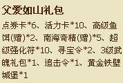 在父亲节活动期间玩家每天活跃度达到50可以祈福1次,活跃度达到100,可额外获得1次祈福机会。父亲节礼包领取截止时间为:2013年6月25日23:55。