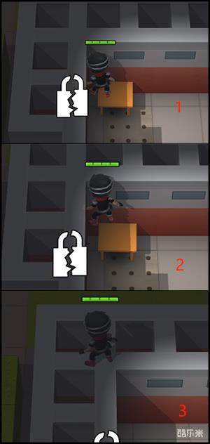 我们是可以踩着物体跳到保险箱上面去开锁的,那样警察第一炮不会对我们造成伤害,而且可以迅速跨墙逃离!