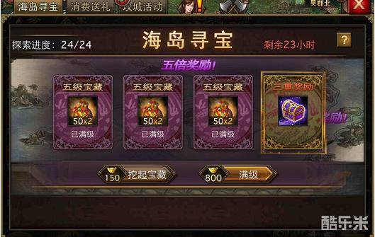 5.指定海岛挖掘宝藏可分别获得2、3或5倍奖励;