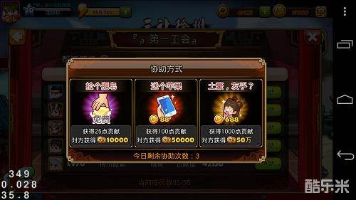 玩家通过协助帮派成员可以得到贡献值,贡献值可在帮派商店中用于兑换经验丹和武将信物