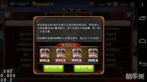 帮派等级到达3后玩家可报名参加帮派战,每周可参加一次,周三至周日为预选赛,周一周二为淘汰赛,才加帮派战的帮会都可获得武将信物作为参赛奖励