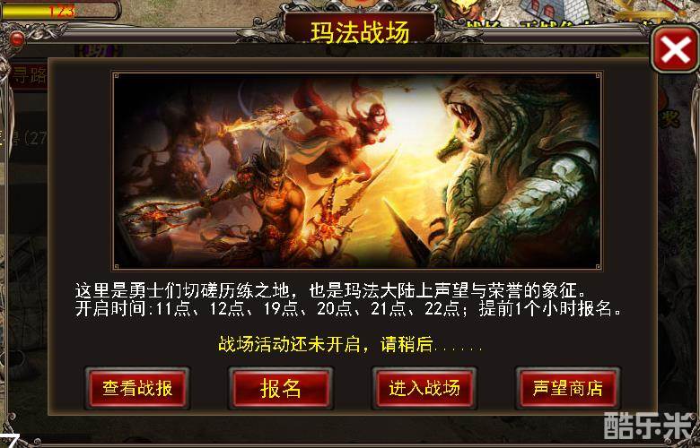 玛法战场开启时间:11点、12点、19点、20点、21点、22点;提前1小时报名