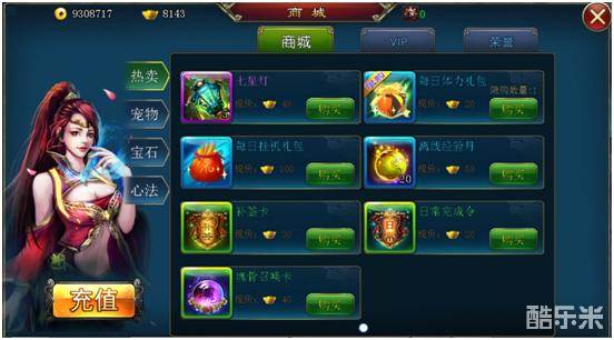 目前《斩魔》中的商城共分为三部分,分别是商城、VIP商城和荣誉商店。