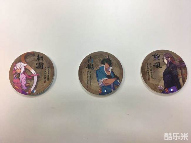 该杯垫为陶瓷制,一边印有三大主角形象,上附角色诗;另一边则以黑色海绵作底,起到非常棒的防滑效果。