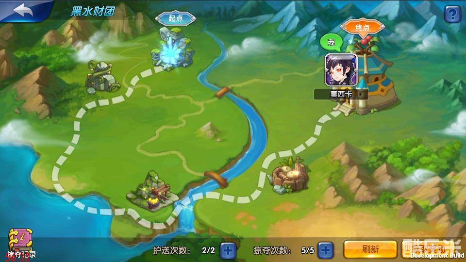 黑水财团是游戏中获取金币的主要途径。黑水财团分为护送和掠夺。护送顾名思义护送商品,按照护送物品品质获得奖励,品质越高奖励越好。物品品质可以花费钻石刷新或者直接购买最高品质。护送时间为1个小时,最多被掠夺2次。如果中途未被掠夺,可以获得全部奖励。最少可以获得50%奖励。掠夺其他玩家可以抢夺该玩家的护送奖励,奖励根据该玩家护送物品品质决定。每次掠夺不管输赢均会消耗一次掠夺次数。