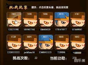 4.报名成功后,通过挑战玩家,积累功勋,从而提升战功排名,每周可以挑战30次。