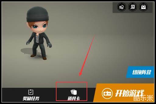 在游戏大厅界面“开始游戏”按钮左侧有一个“道具卡”按钮,点击会进入道具卡界面。