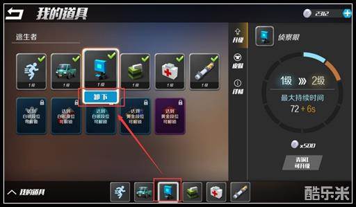 初始默认可以使用6个道具,到达白银段位后可以解锁“跳高”、“生命上限”和“雷达”三张道具卡,黄金段位可以解锁“巡逻犬”和“阻挡箱”两张道具卡。