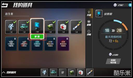 有空的卡槽时点击想要放置的道具卡后会激活“使用”按钮,点击按钮即可完成装备道具!
