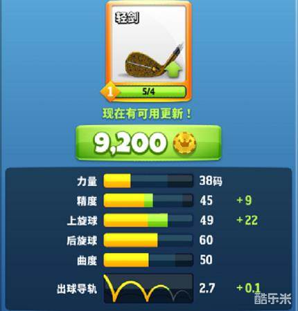 挖起杆是游戏中主要用途是在果岭边缘切球进洞,挖起杆主要关注的属性是引导线和上下旋,其他属性几乎不怎么用的到。