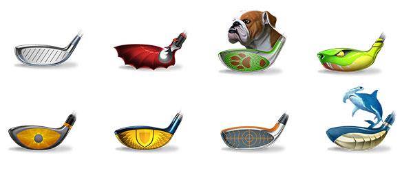 除了基础杆,《决战高尔夫》为玩家设计了7支属性值不一的炫酷木杆。话不多说,上图!