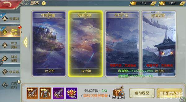 蓬莱仙府可以组队进入,也可以单人创建队伍进入哦。也许有玩家大大会有疑问,可以单人挑战的话为什么我要组队?因为会根据通关时间对副本进行评级,星级越高的掉落稀有道具的几率越高高高高啊