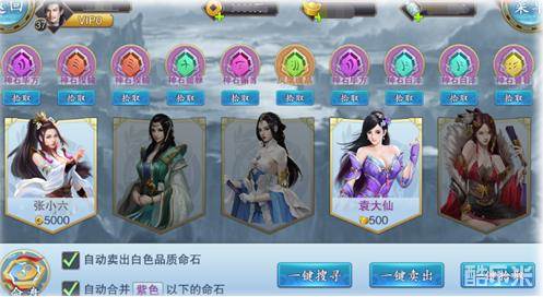 一键搜寻:非手动模式,采取系统自动,系统自动状态下,则是花费最少5000铜钱,从左往右依次进行购买,当满足玩家勾选的如:自动卖出白色,自动合并紫色,会自动操作,不满足的则占用一个命石坑位,直到命石坑位全部满,则停止当前一键搜寻的序列