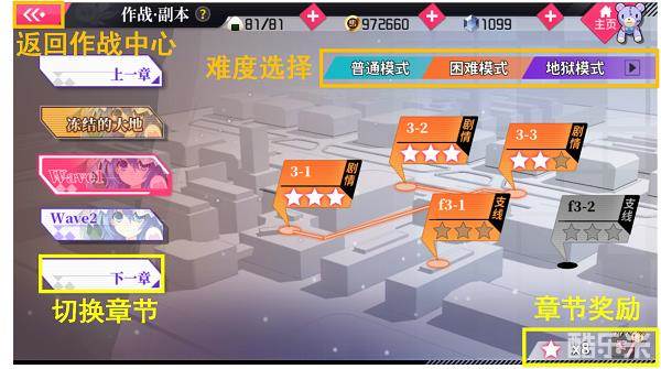 而【难度模式】只有结束完每一章后才可以切换,提升不同的难度,所获得的奖励也不同。