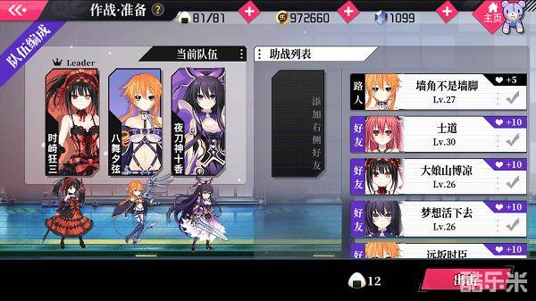 进入作战·准备,可以进行助战编辑,要是有过不了的副本,可以抱大腿哦。