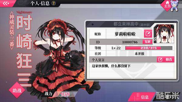 【玩家信息】在这里可以了解到自己玩家的基本信息,但也有必要说一下,在玩家信息界面中有一个【助战】的标识。