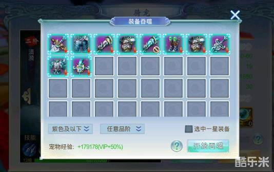 3、多余的低级装备,还能通过宠物进行吞噬。通过吞噬装备可增长宠物吞噬经验和等级,进而提升宠物和玩家的攻击力和战斗力。