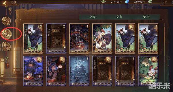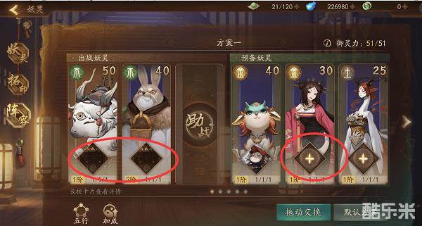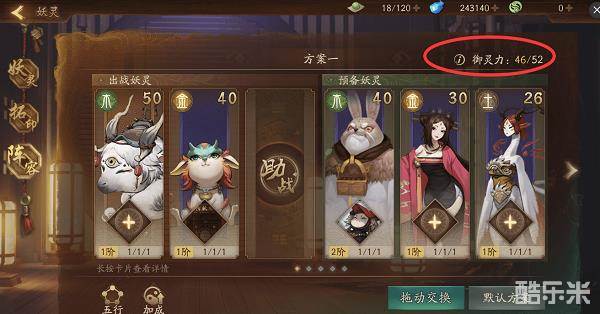 在阵容的右上角会有一个整套卡牌的御灵力提示,御灵力与随着主角的等级而增加。