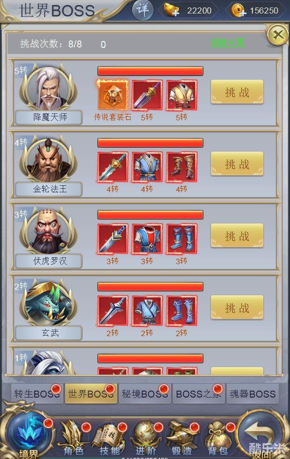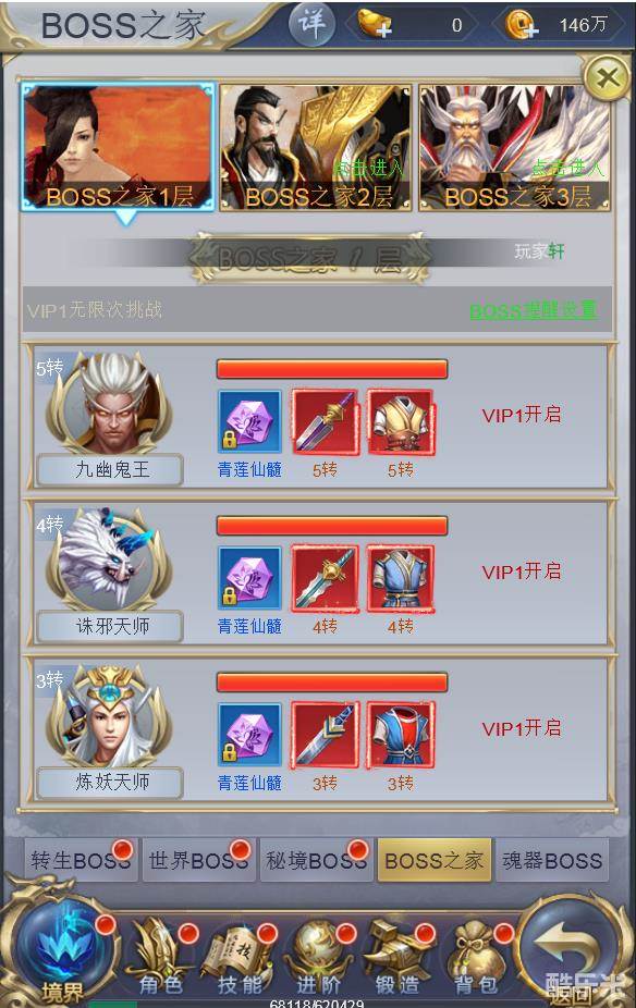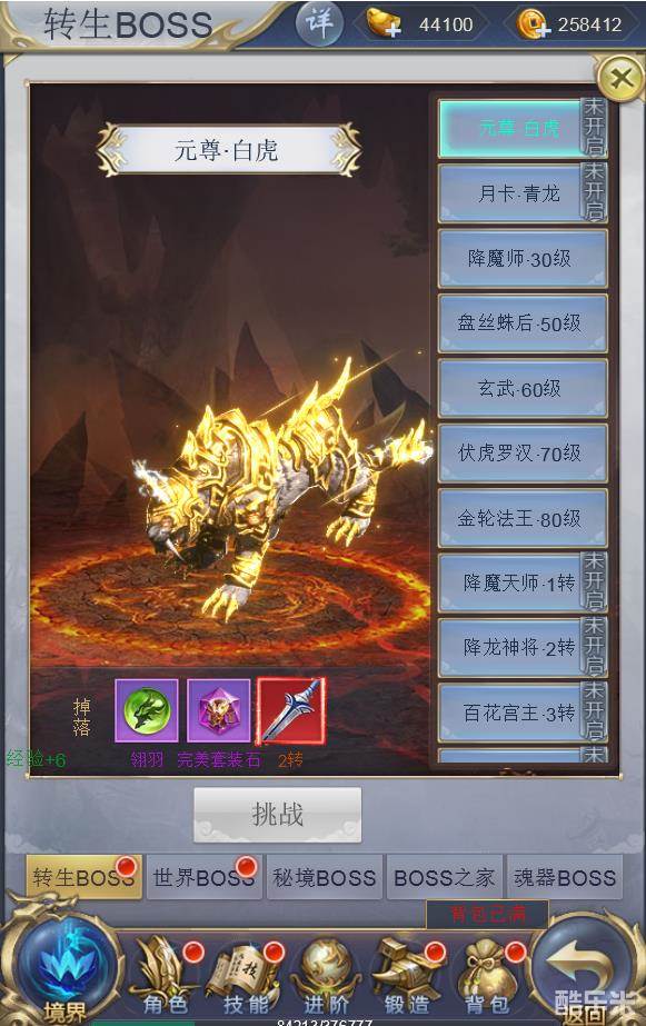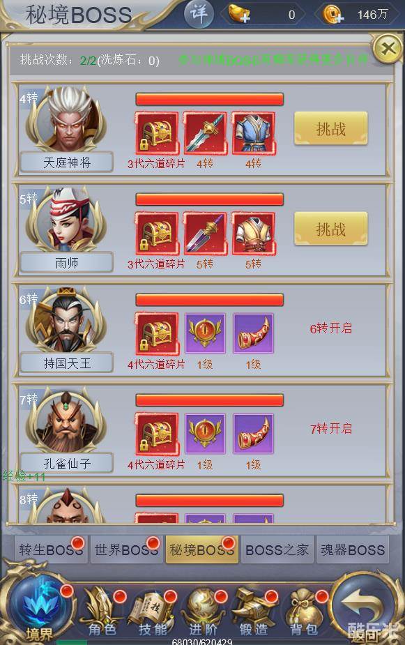查看界面:【BOSS】-【秘境BOSS】标签页