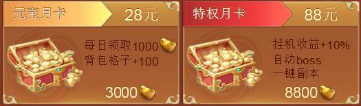 3、购买月卡可击杀额外青龙白虎BOSS,并可快速挑战已通关BOSS