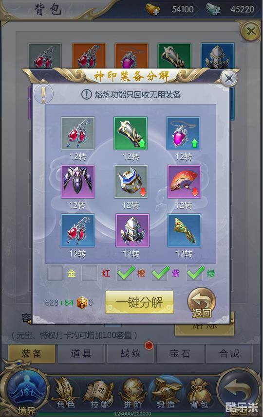 五行神印有11个部位,盔、鞋、腿、腕、甲、刀、坠、符、镯、戒、化形,每个神印的部位可以装备对应是神印