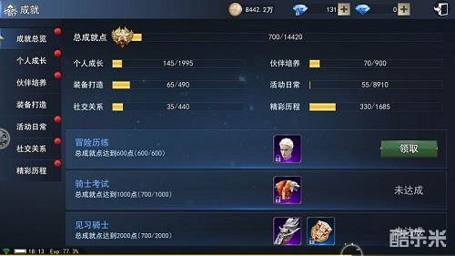 《天使圣域》玩家完成日常、副本、活动可以达成活动日常成就;击杀其他玩家或者被其他玩家击杀可完成社交关系成就;累积金币、解锁背包、每天签到可以完成精彩历程成就。主要奖励为钻石、金币、魔宠精华、宝石、坐骑丹。