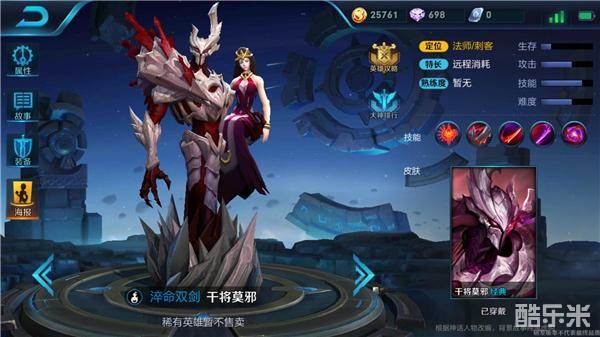 对于干将莫邪简易的实战技巧今天说到这里就要告一段落啦。理性地来分析一下,干将莫邪操作难度大最重要的原因就是技能瞄准的方式比较特殊,其他方面和普通的后排法师没有什么两样,技能命中率需要多加练习,而且永远都是一味的向前施法,游戏的趣味性也少了很多,如果能掌握这种奇特的施法方式,用这位新英雄作为赛季中后期上分的倚靠倒是很有意思呢!