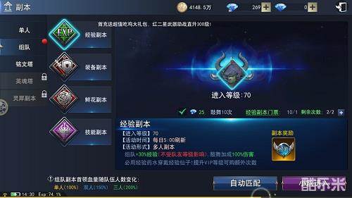 《天使圣域》经验副本是什么?经验副本如何获得最大奖励? 经验副本是游戏里玩家升级的重要方式之一,限制等级:70级以上,限制次数:每天2次,每次进入副本需要消耗一张门票,一起来看看吧!