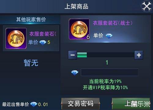 当玩家在《天使圣域》的交易行上架商品,系统会给出其他玩家的售价,好让我们进行参考。当然了,最终的售价还是由玩家自己决定的。但要注意的是,系统会收取19%的税率,VIP税率则是10%。
