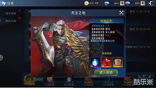 无主之地是《天使圣域》的限时活动之一,在每天晚上8点至8点半开启。进入副本后,我们的目标是击杀怪物或其他玩家来获得积分,在30分钟内累计足够积分即可通关,并获得攻击神兵等各种奖励。