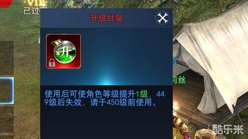 《天使圣域》的升级甘泉在449级之后失效,因此玩家记得要在450级前使用。但是游戏前期有着大量主线任务,升级比较容易,如果过早使用升级甘泉会很不划算,建议在300级之后再使用。