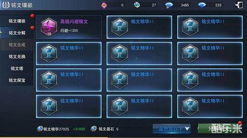 除了种类,铭文还有品质上的差别,以蓝色、紫色、橙色和红色作为区分,品质依次递增。品质越高属性加成也越高,因此记得保留高品质的铭文并拿来镶嵌哦。而多余的铭文可以分解为铭文精华,并用于铭文升级,从而进一步提升铭文属性。