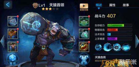 天猿首领——金刚有着AOE技能,单体控制能力也非常强悍,尤其大招的决斗更迫使对方无法使用任何技能,但是由于近战英雄,肉盾英雄还是以抵抗伤害为主输出不算充足,在单挑对线比较惧怕手长消耗和强力爆发型英雄。