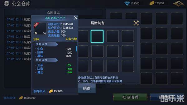 玩家在公会仓库中可以上缴用不到的装备,以兑换所需物品。