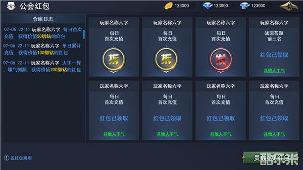 玩家参与答题活动或充值后,可在公会中免费发放红包,与全体成员分享喜悦。