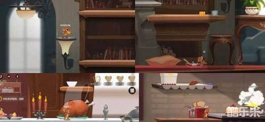 我们在游戏场景中的任何台面上或者是地上都可以看到道具,其中小奶酪、牛奶、蛋糕、烤吐司、果盘、火鸡为增益型的道具,吃完后可以祛除眩晕的状态,让自己跑的更快,杰瑞的话确保安全的情况下可以吃,汤姆若知道杰瑞的大概位置可以吃了之后再追。