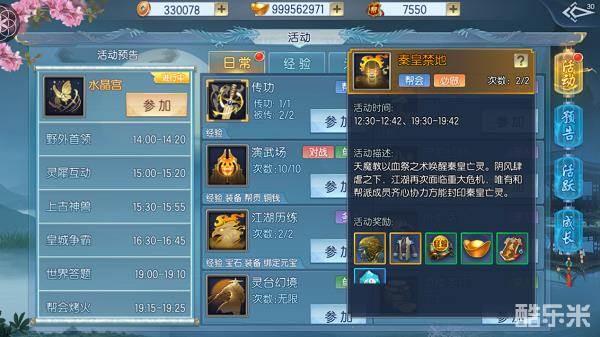 秦皇禁地是《那一剑江湖》中参与门槛最低,玩法也最为简单的帮会集体活动。只要在活动开始时间内进入活动界面即可参与,活动没有结束,随时可以进入。