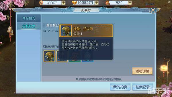 参与即可获得帮贡值,帮会拍卖行还会根据输出占比拍卖橙装、S级神兽及头衔令牌。