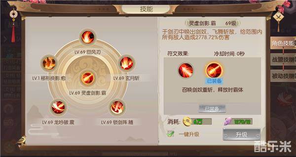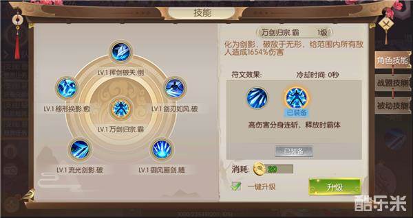 万剑归宗·霸:范围内造成1654%伤害,释放时处于霸体状态,冷却时间0秒,最高伤害技能,释放时霸体能够克制地方的控制效果,以免技能被打断,关进时刻使用,可以扭转战局、决定胜负,属于核心技能。