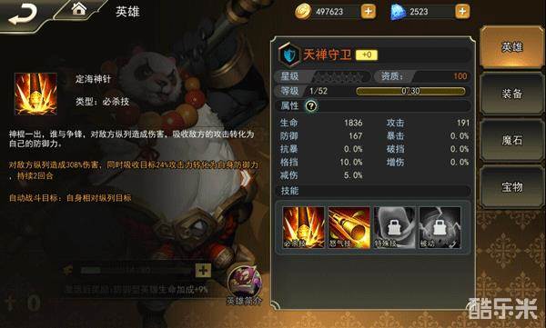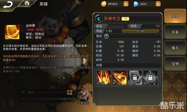 [技能分析]:敌强我越强,打出伤害的同时增加自己的防御力,在所有的前排中,天禅守卫是一个非常特殊的存在。能打能抗,将会是很多玩家奖竞相追逐的对象。