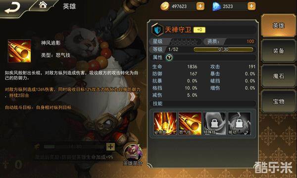 [技能分析]:与神风追影技能有异曲同工之妙,通过必杀技与怒气技能的配合,天禅守卫被称坦克之最也不足为奇了。